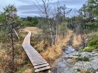 Dette er løypas siste høye punkt,og det er verdt å løfte blikket, herfra ser du både fjorden og byen du skal tilbake til.