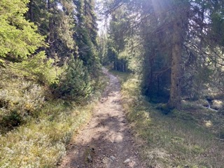 Etter ca. 5 km begynner stigningen mot Bymarka, byens grønne storstue med blanding av stier med grus.